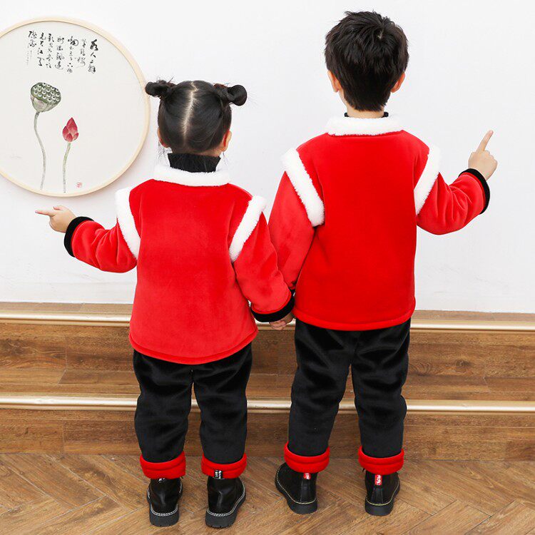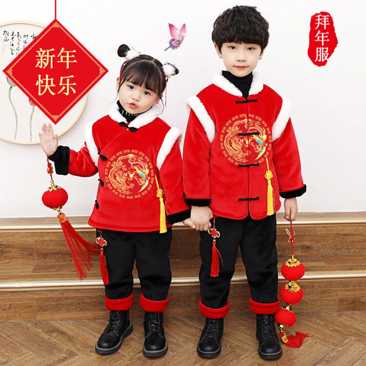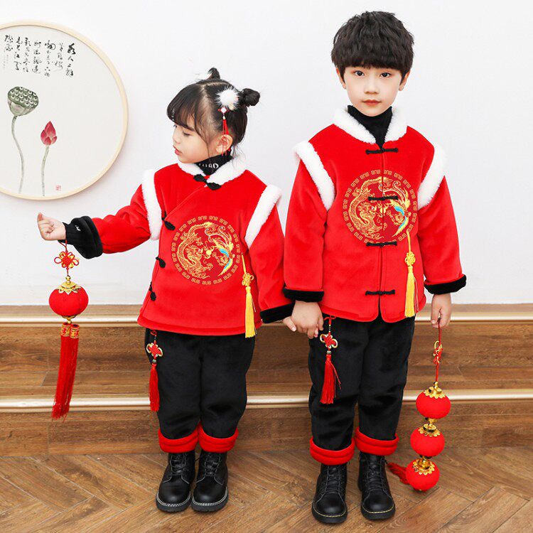 Beiyen-fu boys girls China Wind Down Thickened Chinese Winter Clothing for male and female Chinese New Year's Eve Festive New Year Dress Children Suit