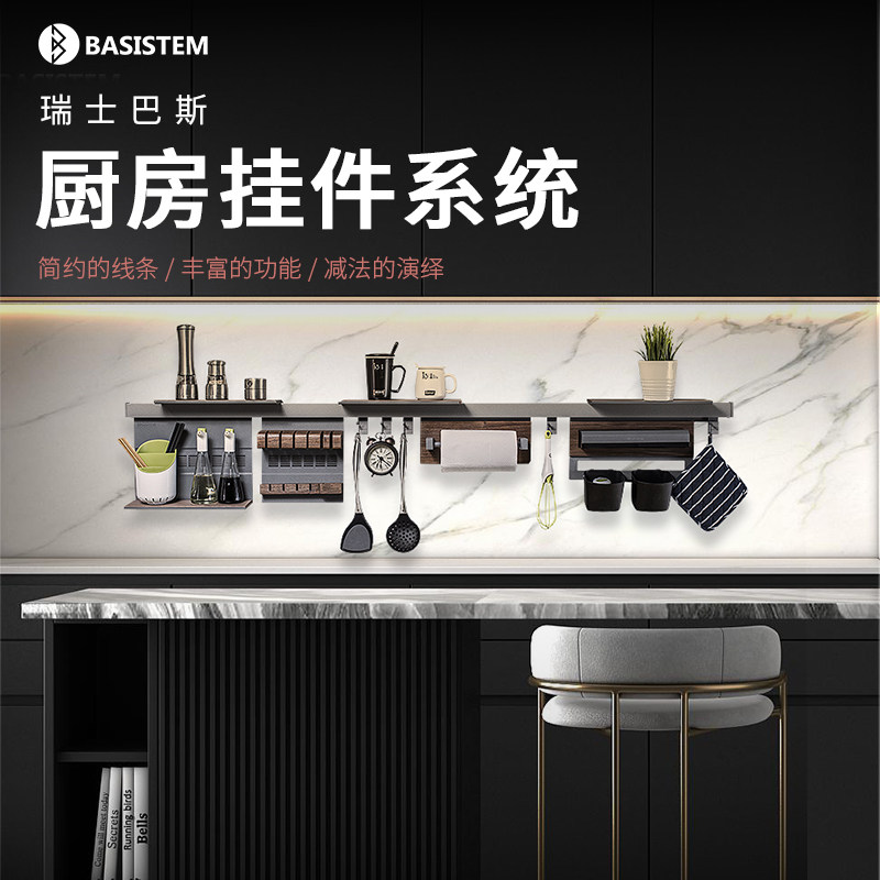 Basel—hook Basel—shelf Basel—solid wood magnetic knife holder Basel—paper roll holder Basel—preservative film sanitary ware rack Basel—upper board chopsticks pot lid holder 3