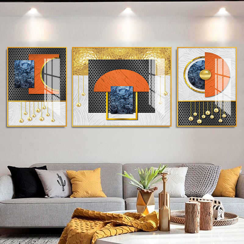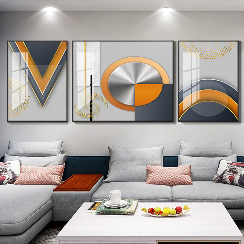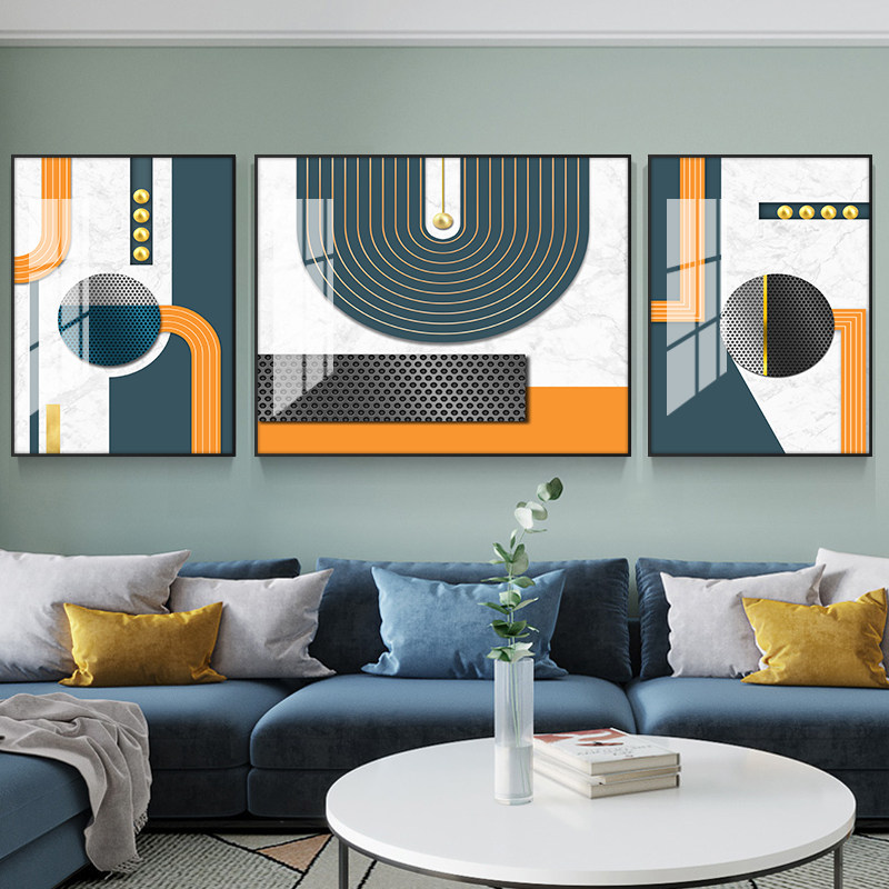 Minimalist Abstract Living room Triple decoration painting modern minimalist sofa Background wall hanging painting Nordic crystal porcelain painting frescoes