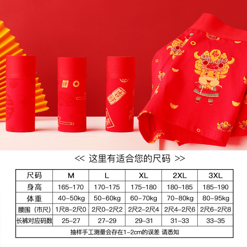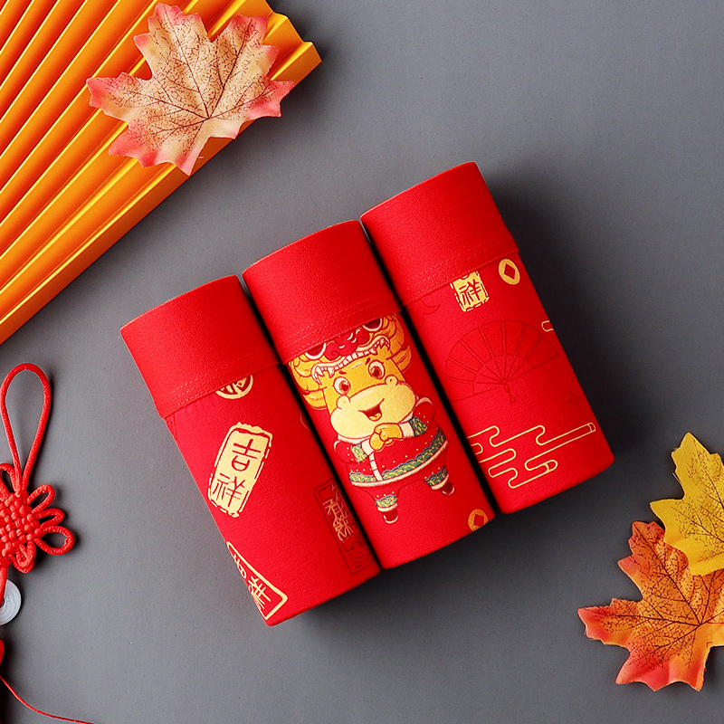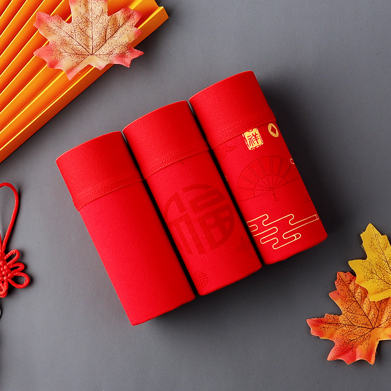 Red Briefs Men's Flat Corner Pants Men's Pants Ben Year Bull Red Personality Student Cotton Youth Four-corner Pants Underpants