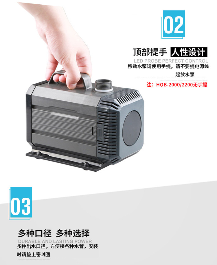 Sensen fish tank multifunction submersible pump mute HQB-2000 fish pool pumping water pump amphibious water pump