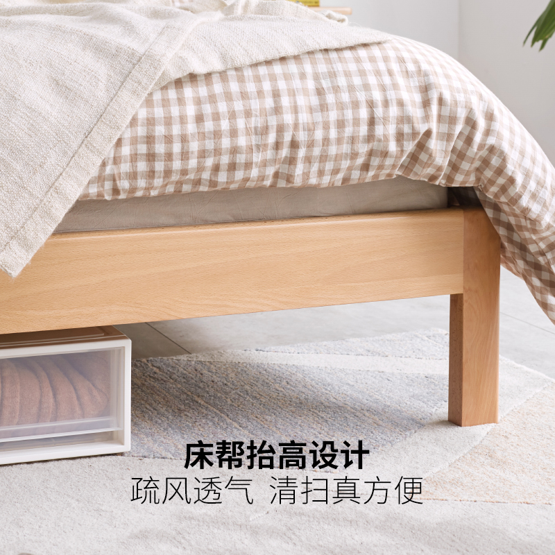 Genshi Muzi solid wood bed simple modern 1 2 meters 1 5 meters single bed Nordic bedroom European beech wood double bed