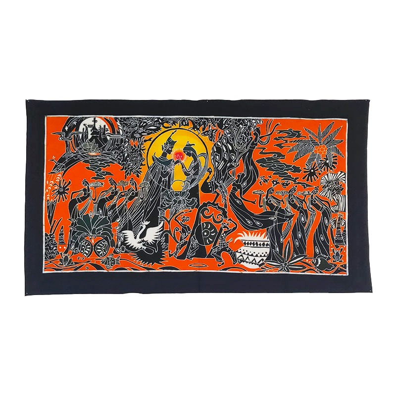 Chinese style hanging cloth background cloth hand dyed cloth Miao Wax Dyeing Painting Retro Mural Home Cotton Cloth Painting Dining Hall Hung Painting