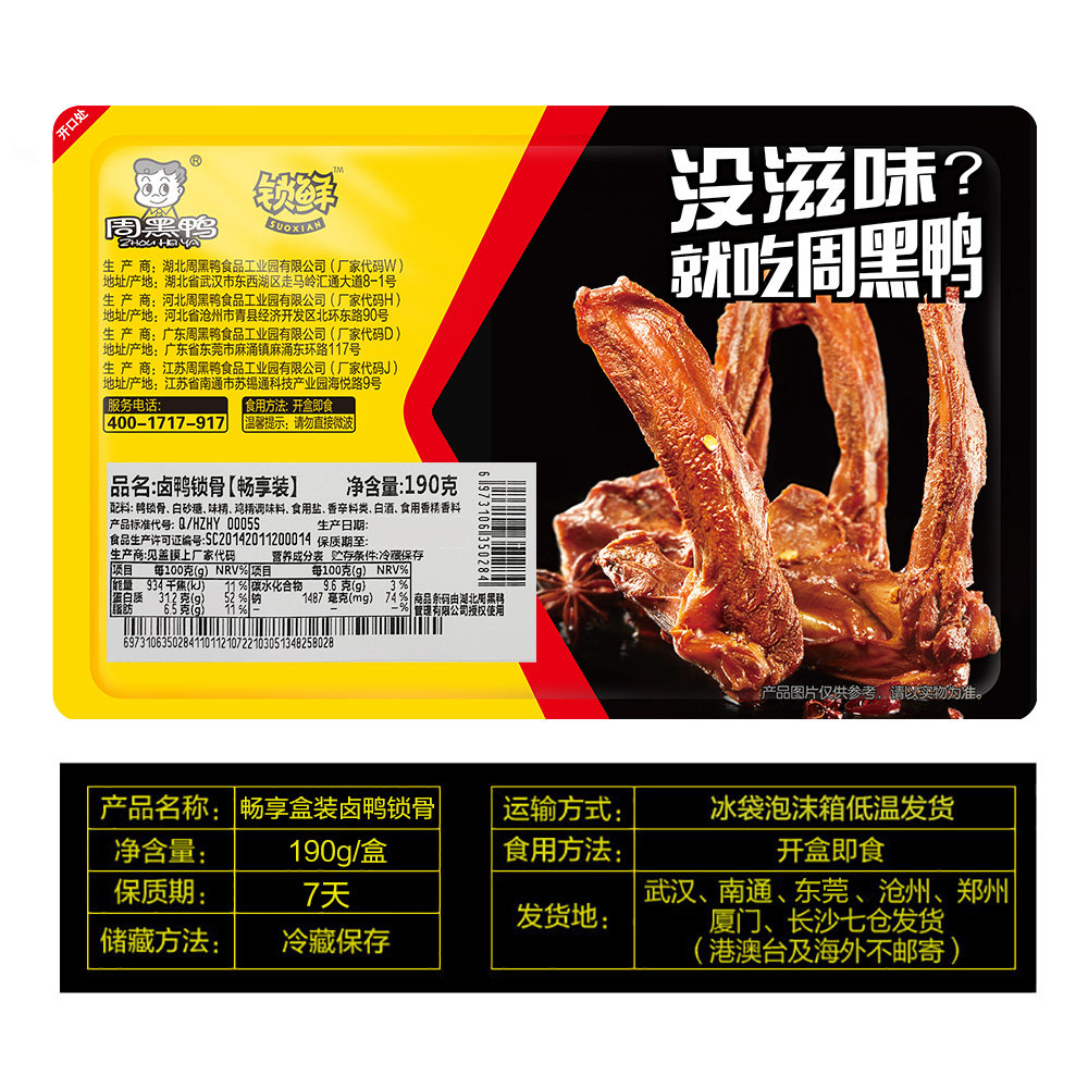(Zhou Hei Duck_Lock Fresh) Boxed Braised Duck Neck Duck Clavicle Duck Wing Cooked Food Snacks Casual Food Snacks