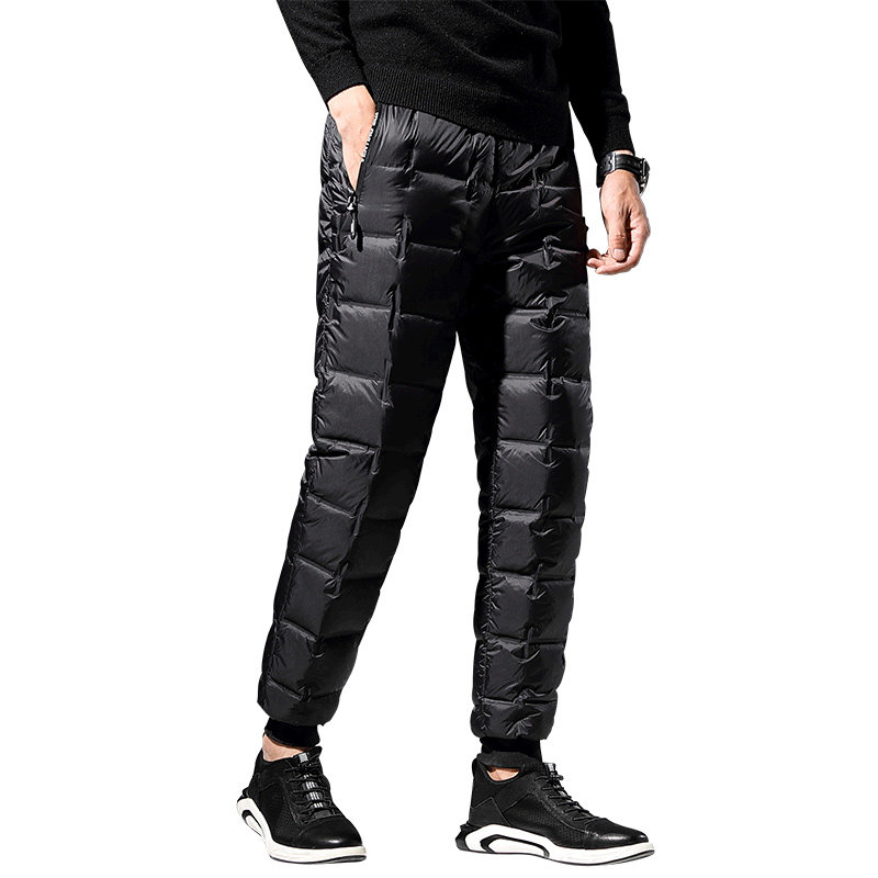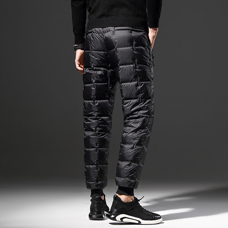 Mengkouwu 2020 winter bright face down pants men thickened straight tube warm high waist slim elastic waist cigarette tube pants tide
