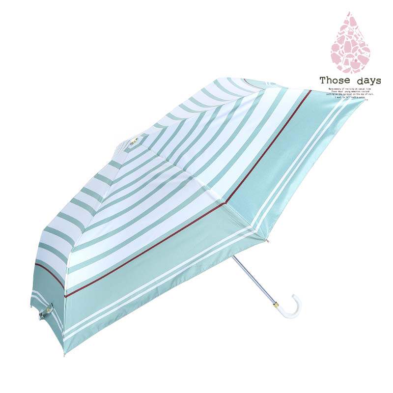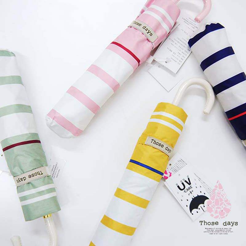 Japanese Those days women's fresh striped windproof and UV-resistant cat tail curved handle Japanese sunshade three-fold umbrella