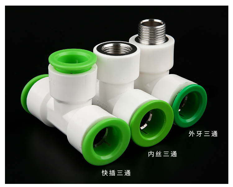 PPR quick connector 4 minutes 20 hot-melt and iron-free universal three-way hot and cold water pipe fittings straight-in quick-connect