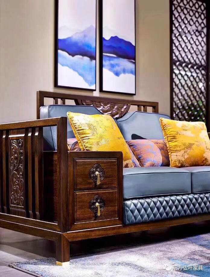 Dongfang Hongye Furniture National Seal Gold Tan Guoyun Elm Ebony New Chinese Sofa Bed All Counters