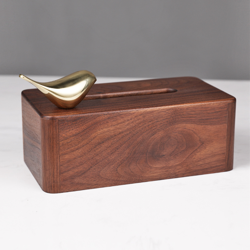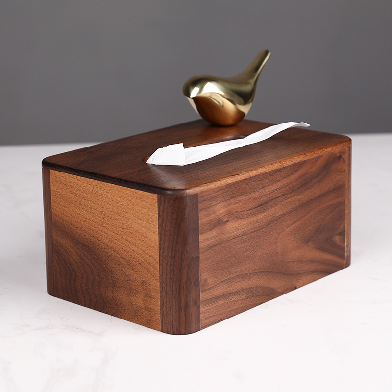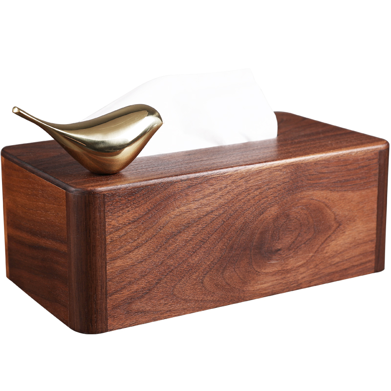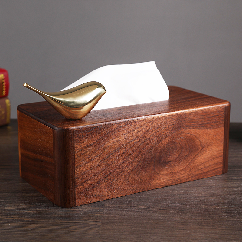 Black walnut solid wood pure copper bird tissue box new Chinese living room home light luxury decoration desktop coffee table toilet paper box