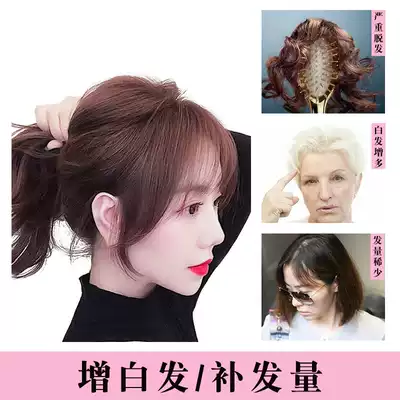 Real hair 3d French air bangs wig female cover white hair volume fluffy no trace invisible patch head reissue