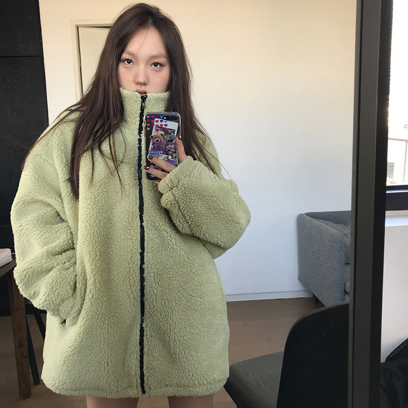 Wang girl's shop lamb plush coat green blue black autumn and winter all-match Korean version loose fluffy bf wind