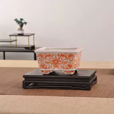 Purple black sandalwood mahogany bright stone flowerpot Buddha statue teapot bonsai crafts decoration base rectangular solid wood