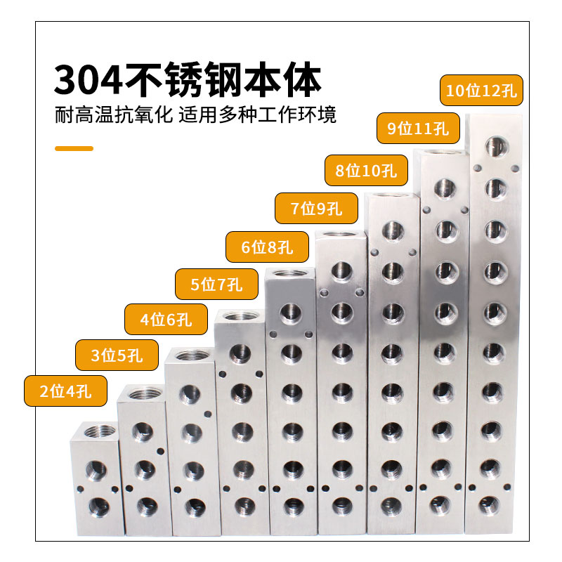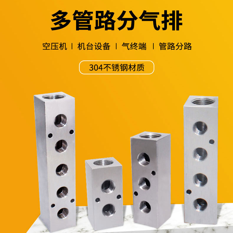 Split-pipe multi-line 304 stainless steel sub-gas exhaust road dispenser triage row straight gas pipe joint gas row