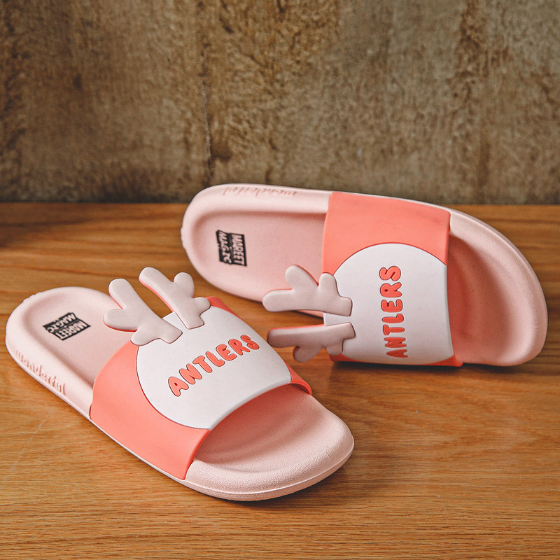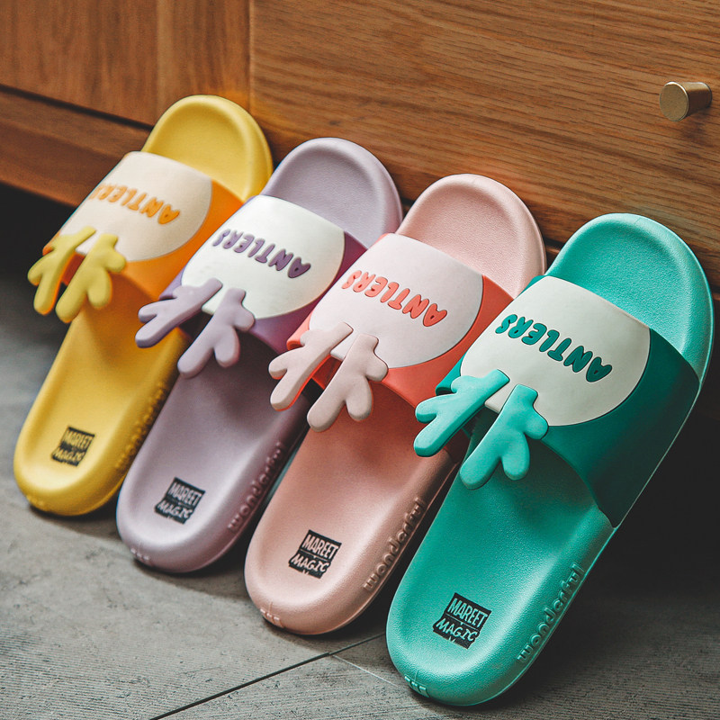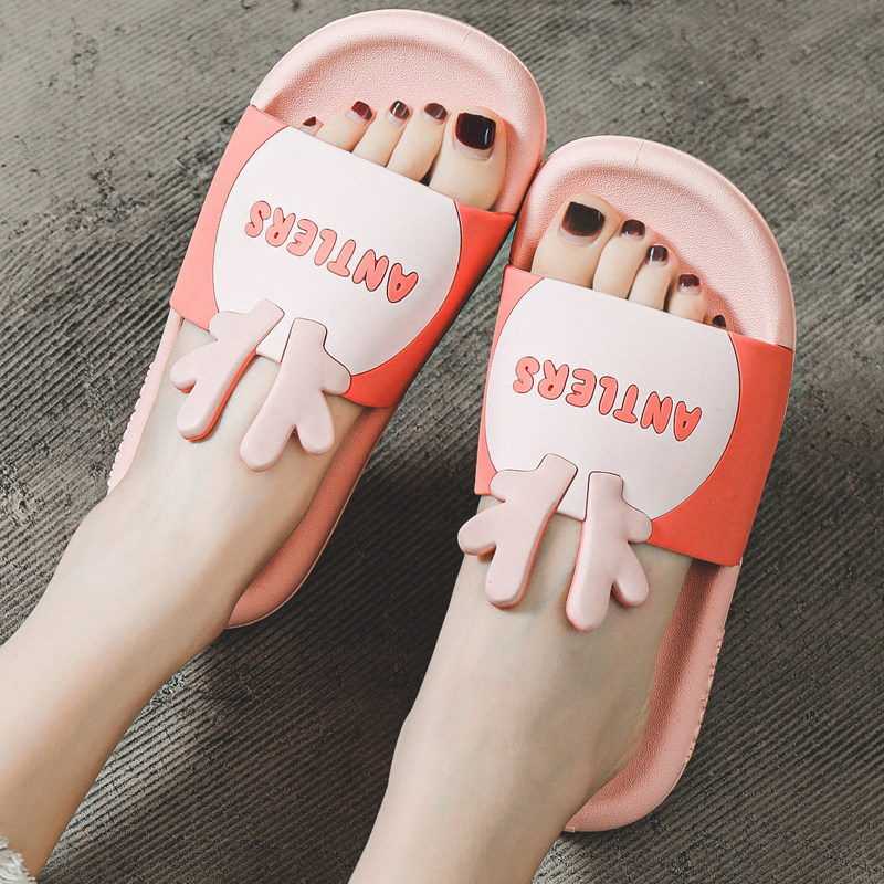 Slippers female summer student bedroom non-slip bath indoor couple cartoon antlers Korean bathroom mute male sandals