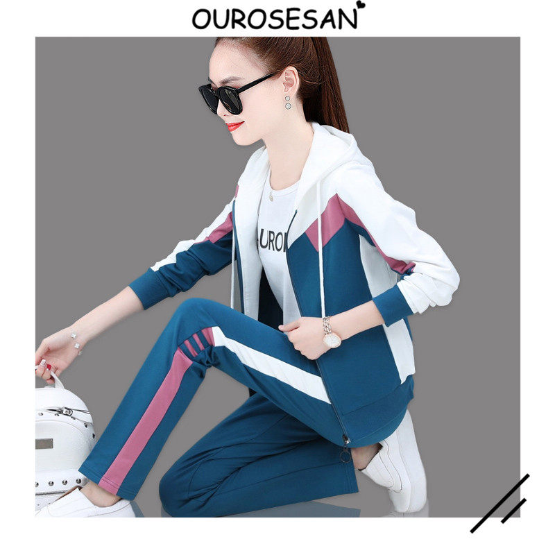 OUROSESAN sports suit women's autumn and winter Korean version loose fashion casual slim trousers sweater three-piece set