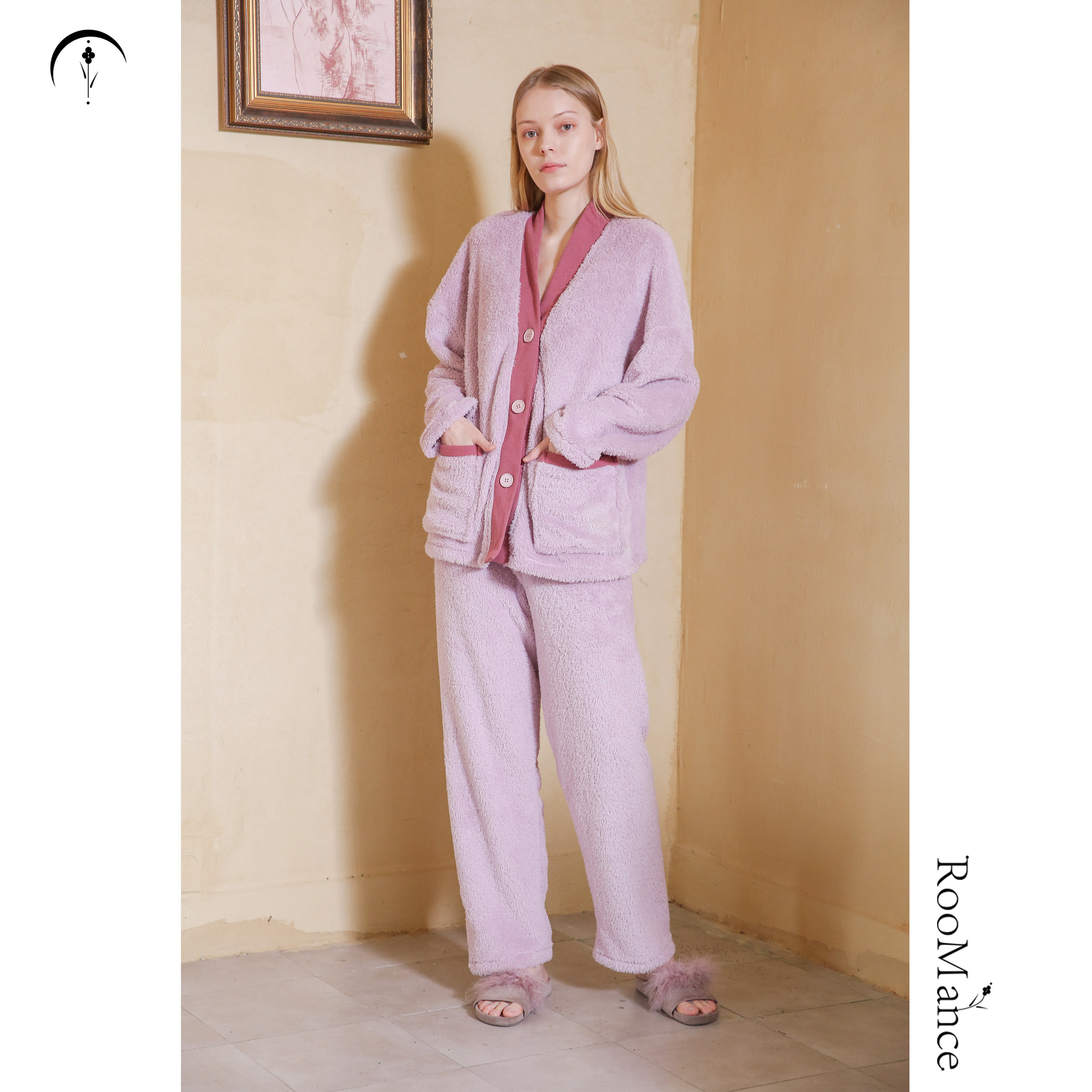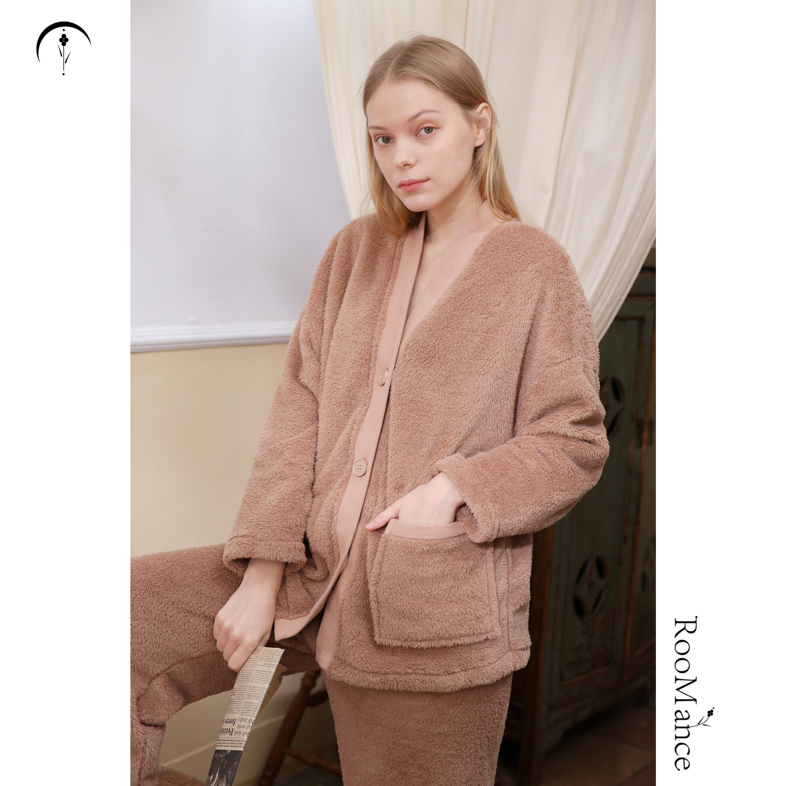 RooMance Rumansi original coral fleece pajamas pajamas women's spring and autumn thickening can be worn outside the home service suit