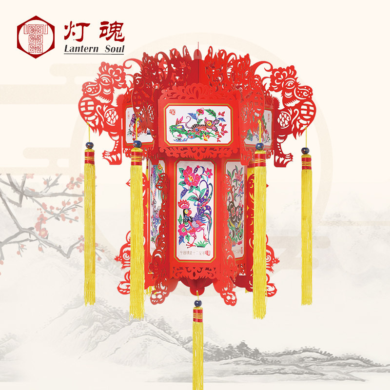 New Year Spring Festival Holiday decoration Fu word paper-cut carving Palace lamp lantern