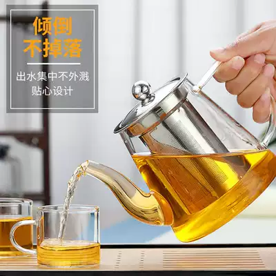 Glass teapot long mouth tea single pot Stainless steel liner large capacity high temperature resistant household tea set tea pot