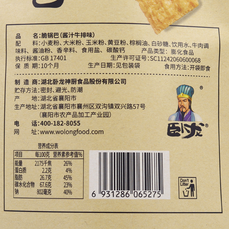 Wolong crispy rice noodles 128g*2 packs old stove spicy steak flavor casual coke snack snacks Hubei specialty handmade