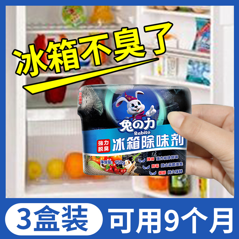 Rabbit Power 3 box refrigerator deodorant deodorant deodorant Household cleaning Fresh sterilization Activated carbon odor absorption