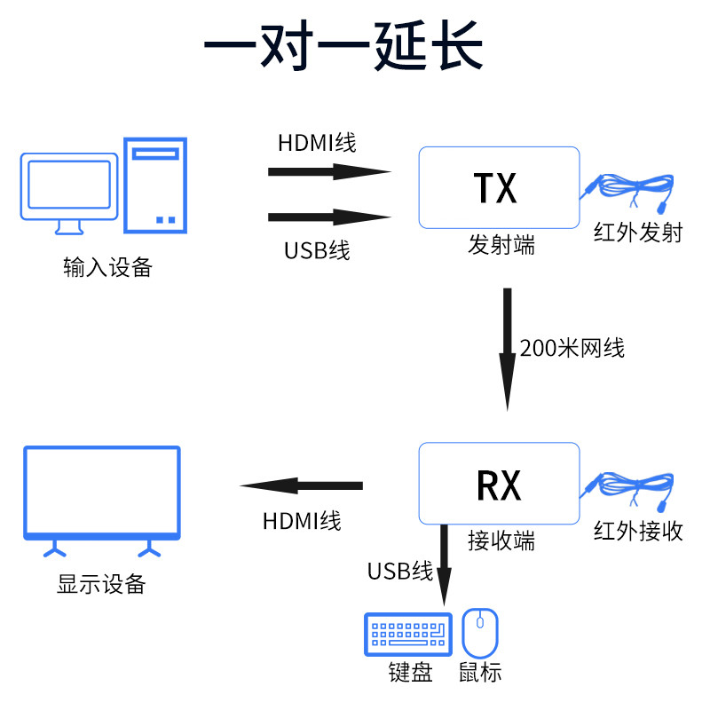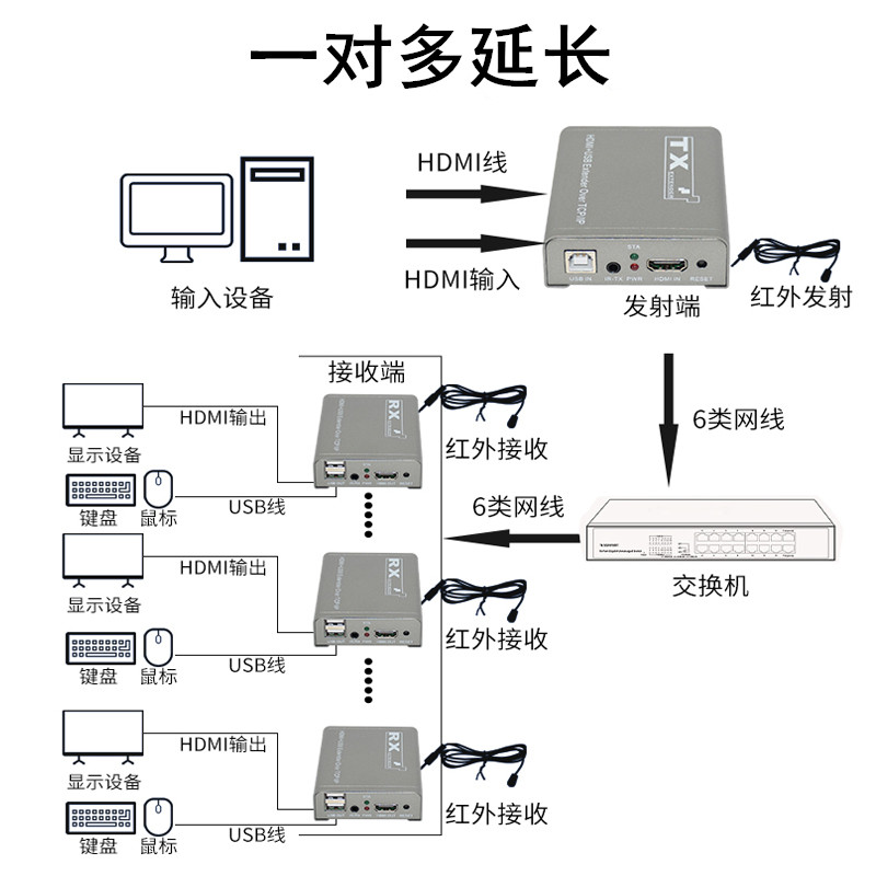 Engineering HDMI KVM extender 200 meters USB key mouse infrared HDMI to RJ45 transmission can pass through the switch