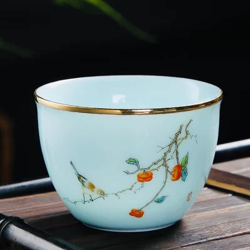 Kung Fu tea cup azure large exquisite master cup gift do not shoot color random gift