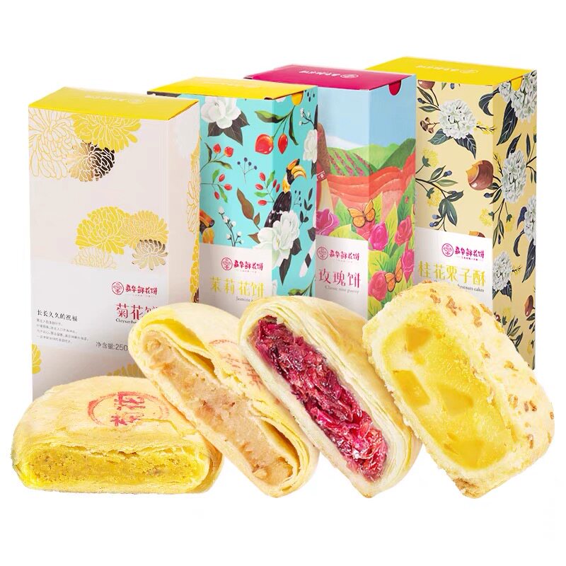 Classic Rose Cake (5 gift boxes) 250g Jasmine cake (5 gift boxes) 250g Chrysanthemum Cake (5 Gift Boxes) 250g Osmanthus Chestnut Crisp (5 Gift Boxes) 175g Classic Rose