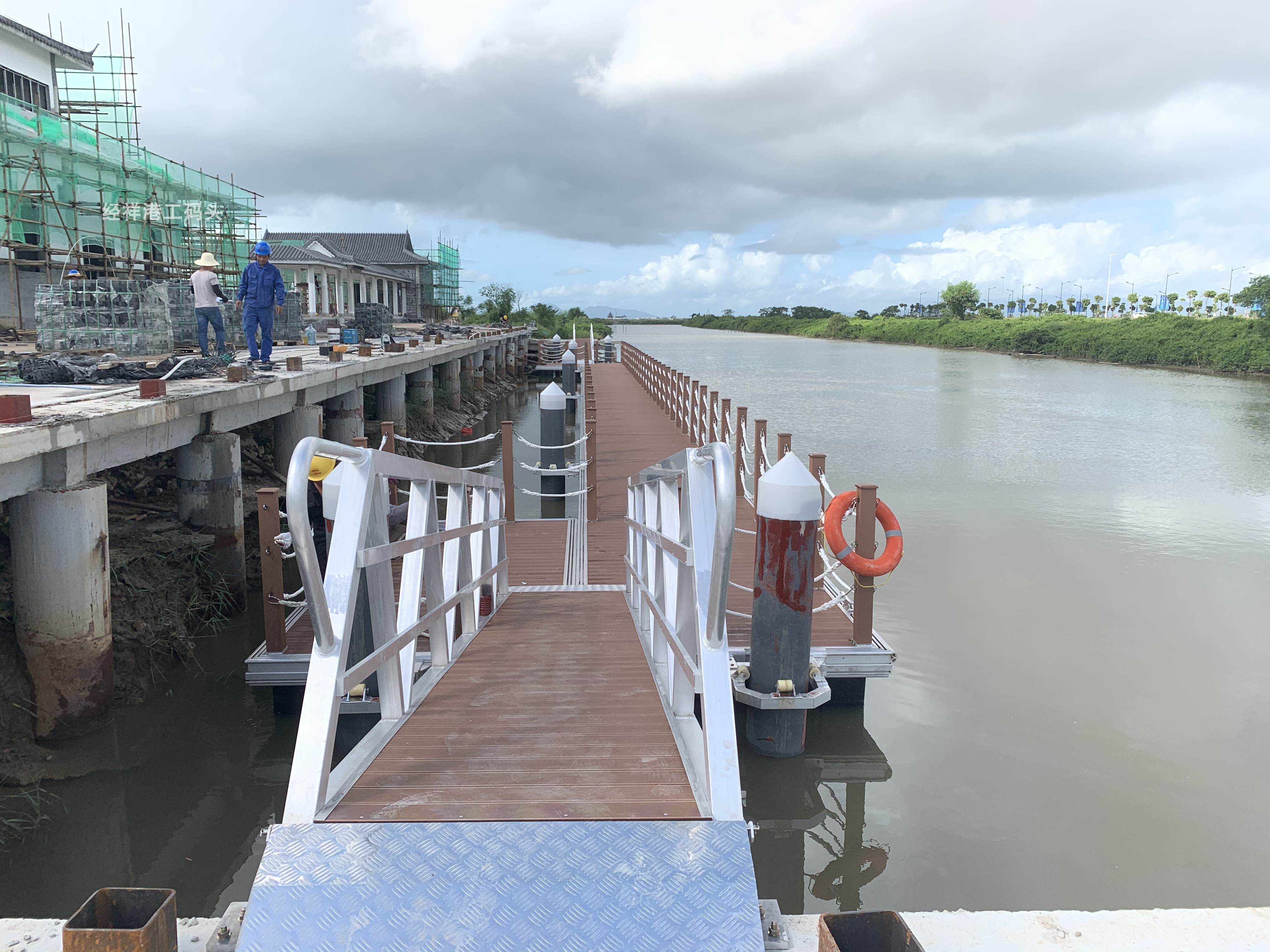 Plastic pontoon pontoon aluminum alloy yacht wharf railing approach bridge steel structure pontoon water board leisure platform