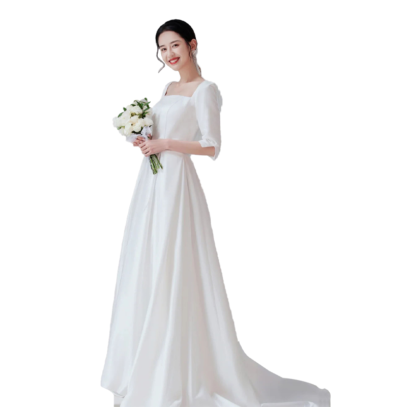 Satin light wedding dress 2022 new simple temperament self-cultivation dress is thin bride wedding forest travel shoot out gauze