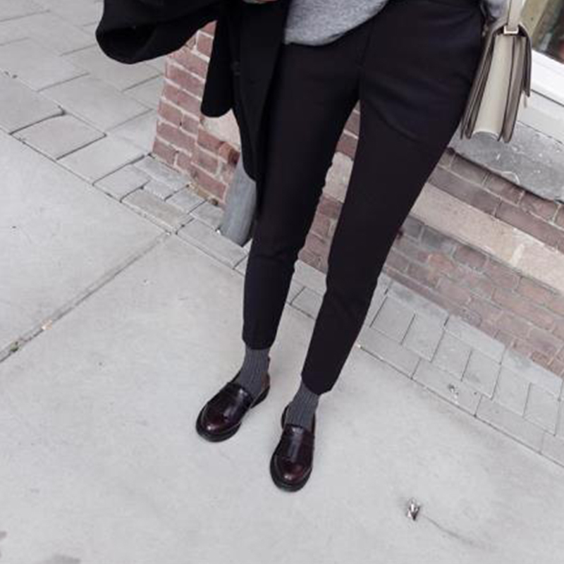 Autumn and winter woolen suit pants Korean version of the cigarette pipe pants women's thickened nine-point straight pants were thin trousers small feet lob pants
