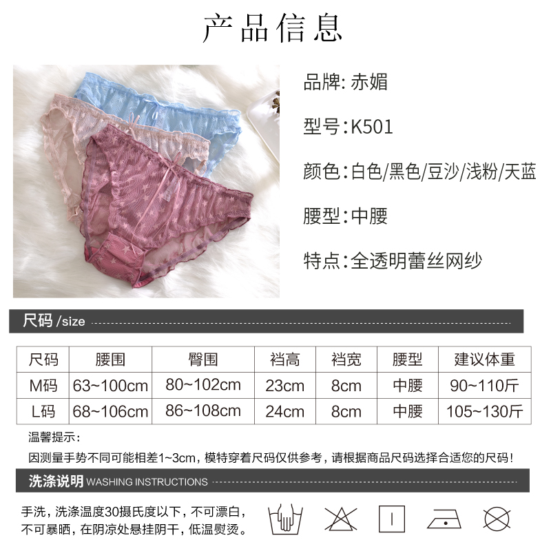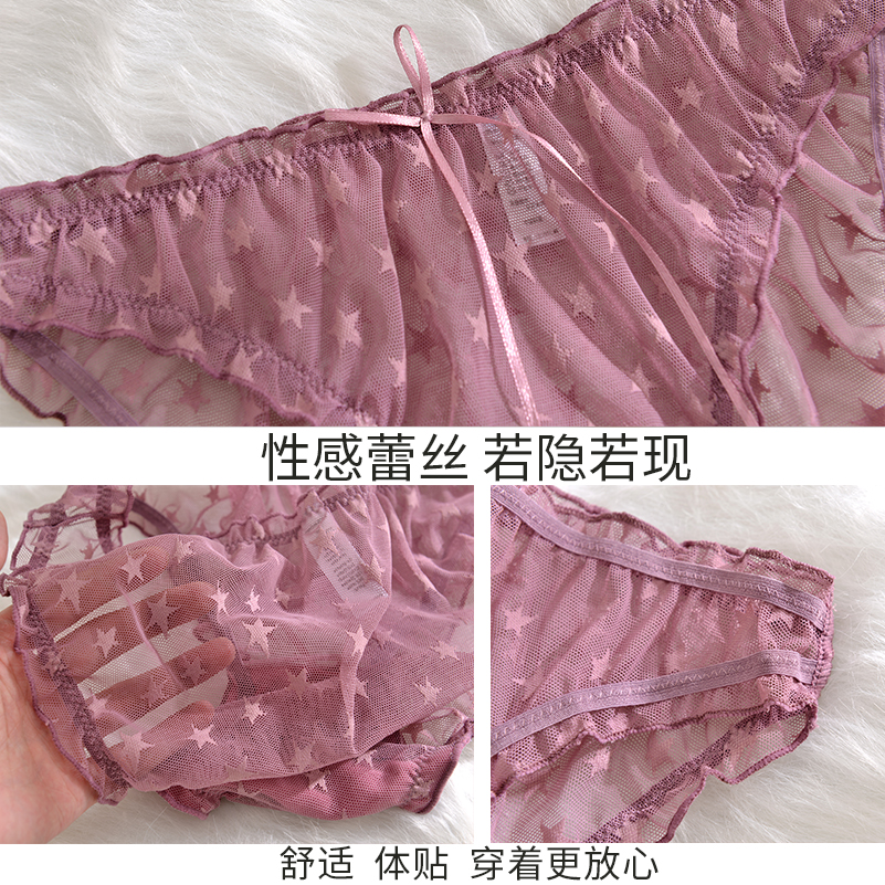 Middle Cashew Lace Triangle Pants Head Teenage Girl Japan-ROK thin Sexy Web Yarn Fire Spicy Seduction Transparent Briefs women