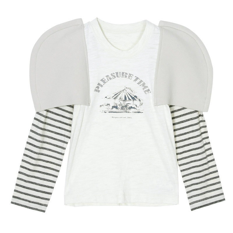 Gangnam cloth children's wear Ole spring wear discount boys girls striped shoulder style children's long sleeve t-shirt