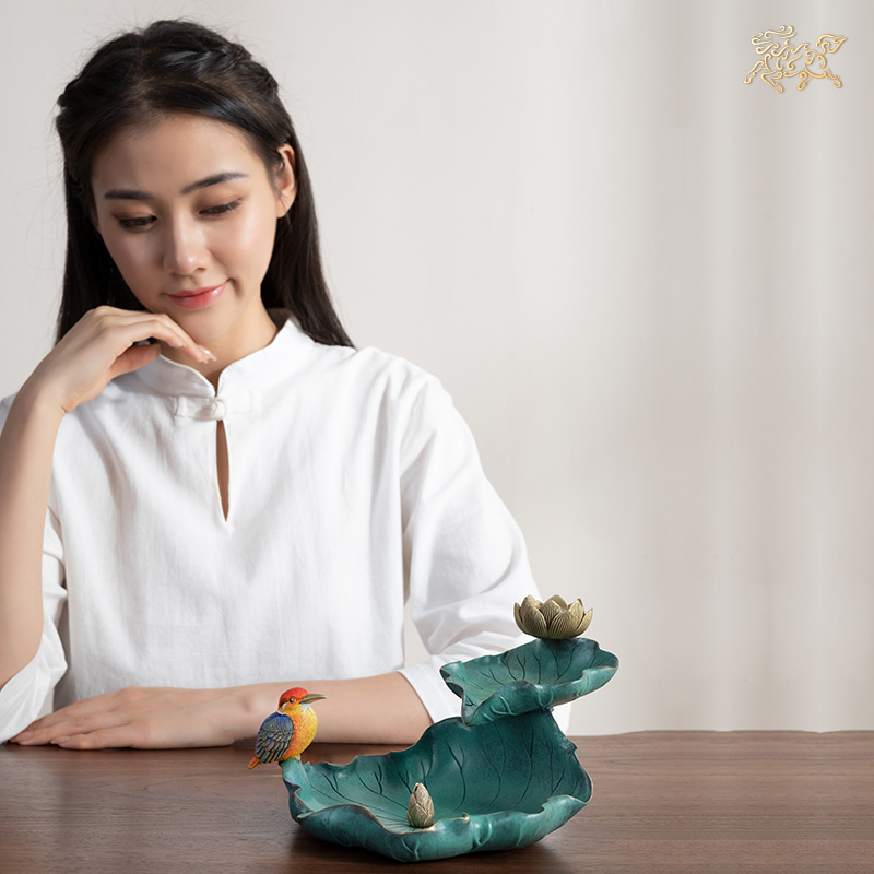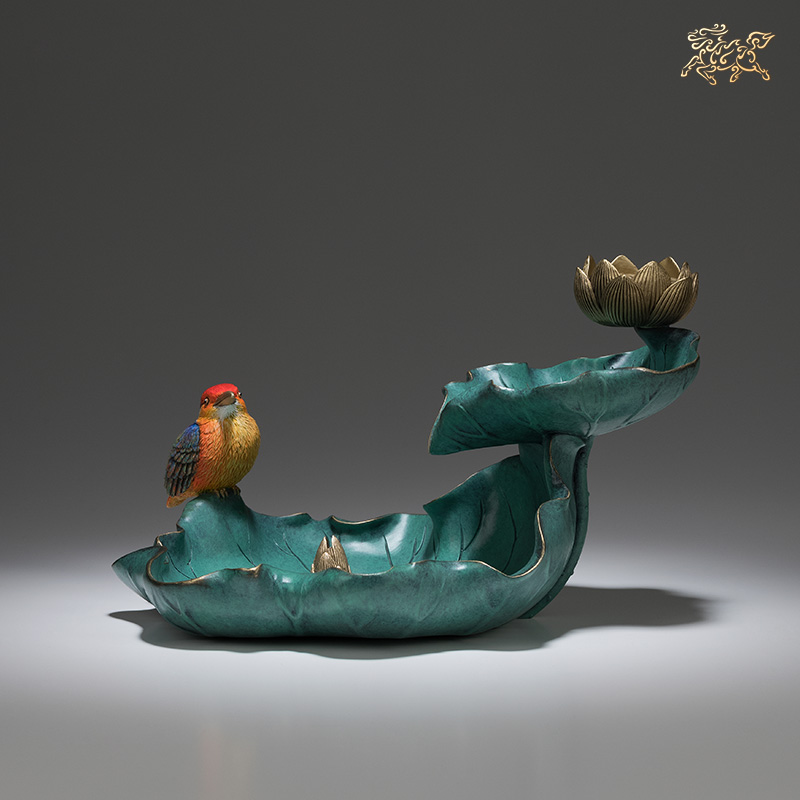 Copper Master's full copper pendulum piece "Hoang Tsui-ying" Cuibird fragrant insert back-back fragrant New Chinese meditation Residence Decoration