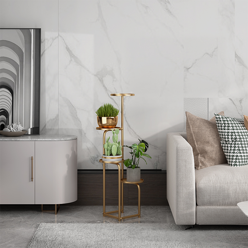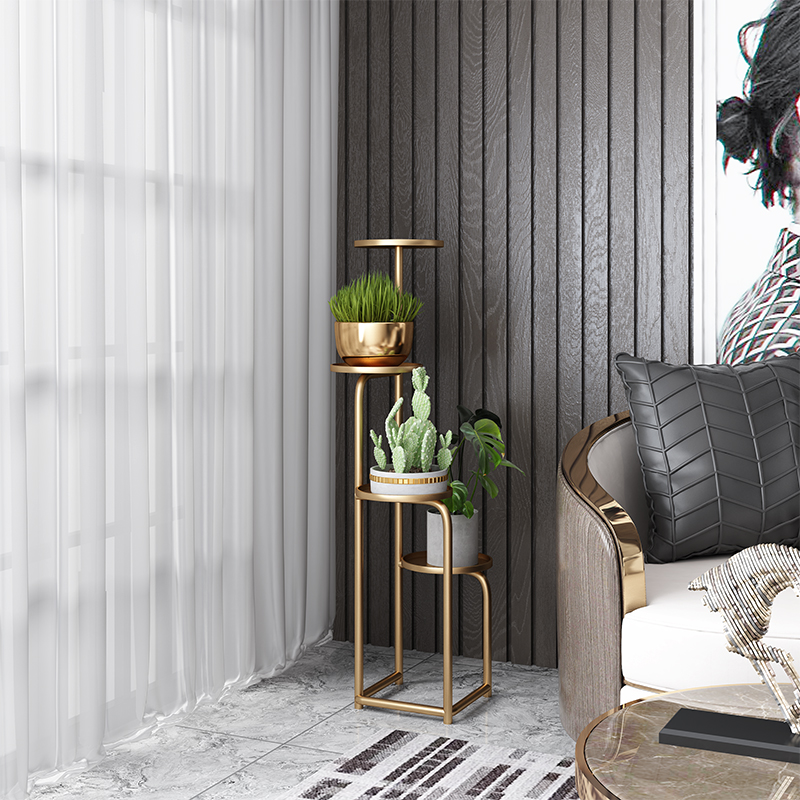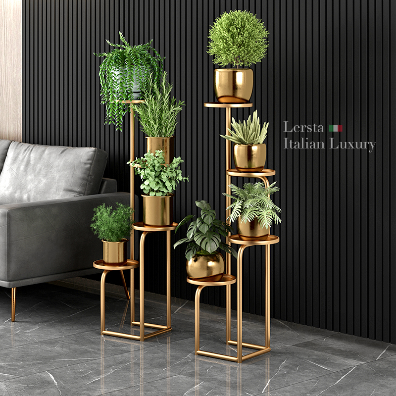 Italian Floral Shelf Living-room Living-room Floor Shelving Indoor Balcony Flower Shelf Iron Art Light Extravagant Multilayer Gold Gge Flower Pot Shelf