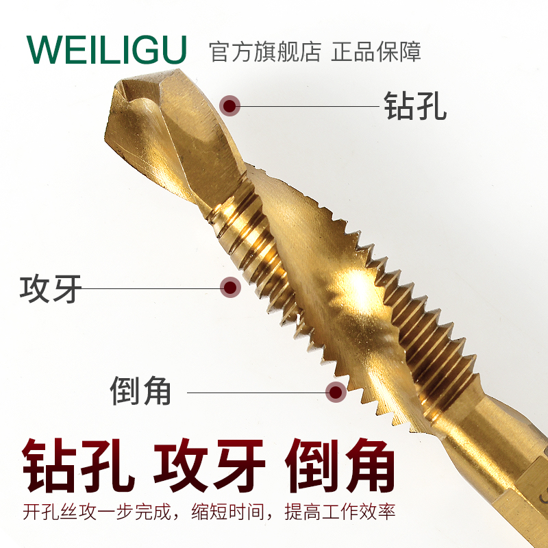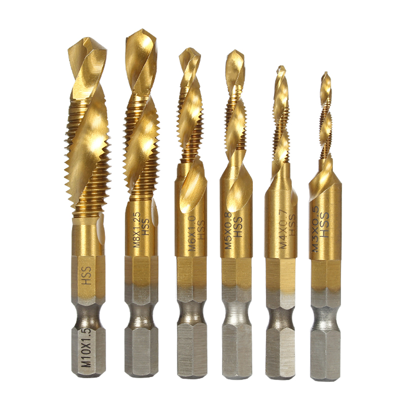 Machine with spiral hexagonal shank chamfering and drilling integrated three-in-one composite screw tapping drill kit 6m3m4m5m8m10