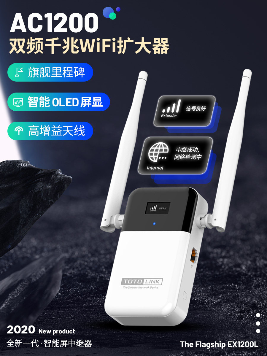 Dual-frequency WiFi signal amplifier with screen display TOTOLINK 1200M wireless relay booster 5G home high-speed wall-through-wall king receiving booster router wf extension EX1