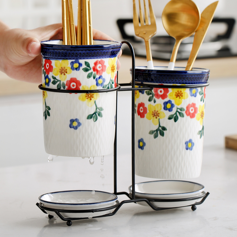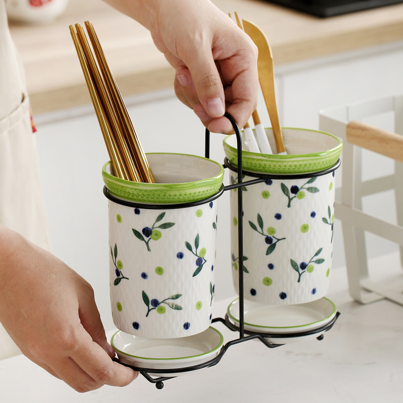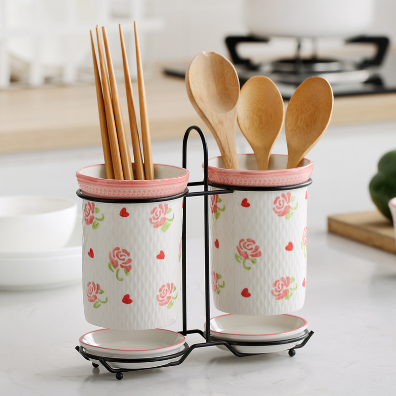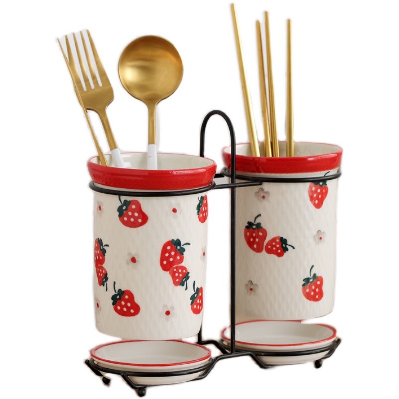 A pair of hand-painted red strawberry chopsticks, a pair of hand-painted pink rose chopsticks, a pair of hand-painted green and blueberry chopsticks, a pair of hand-painted bauhinia chopsticks