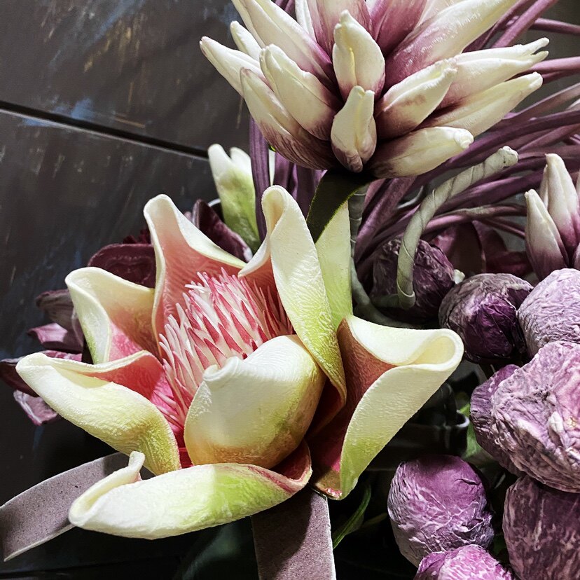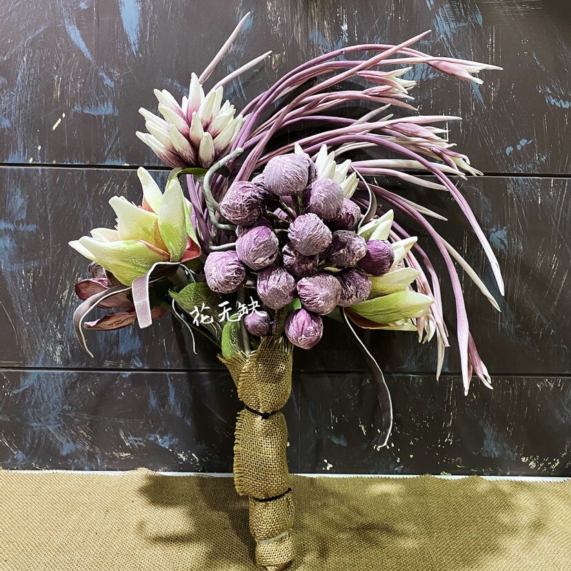 Foam leather flower American antique dry living room art flower ceramic vase fake flower ornaments home decoration