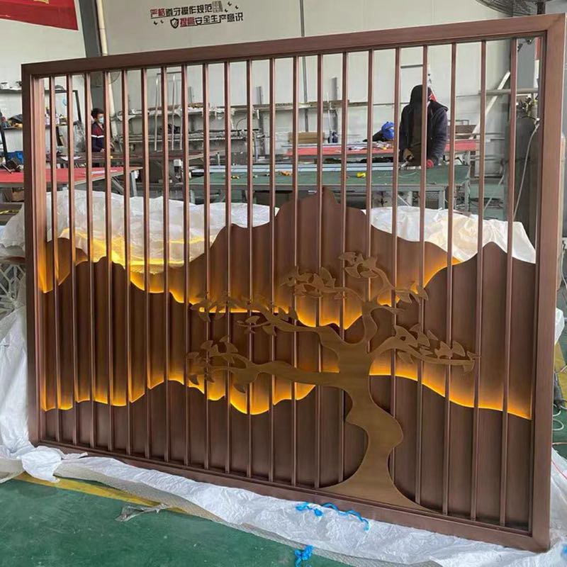 Stainless steel screen custom light luxury living room restaurant hotel outdoor rockery partition modern metal decorative background wall