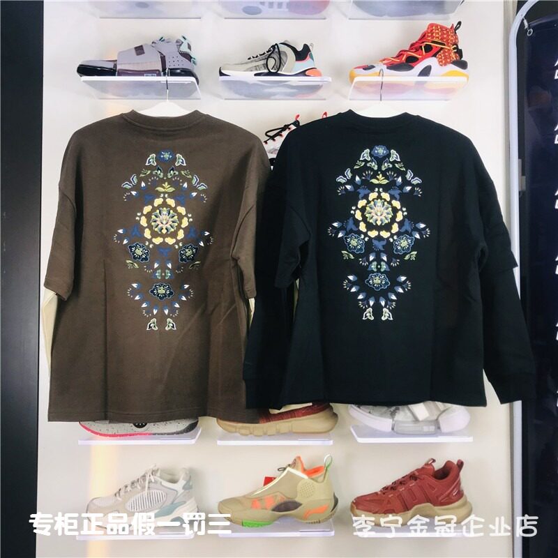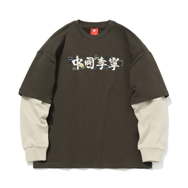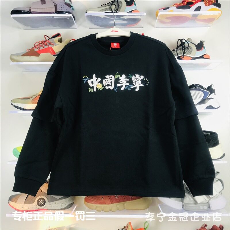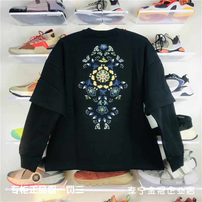 China Li Ning new product Dunhuang Mogao Grottoes lotus embroidery men's fake two-piece headless sweater AWDQ877