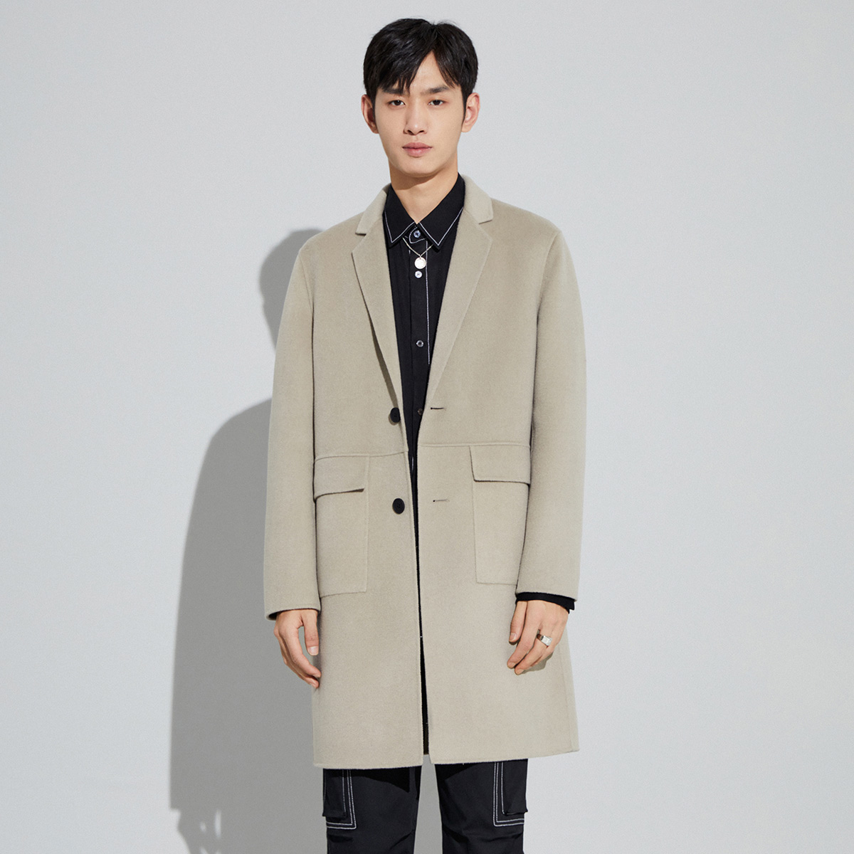 Peacebird men's double-sided woolen men's mid-length woolen coat woolen coat Korean version