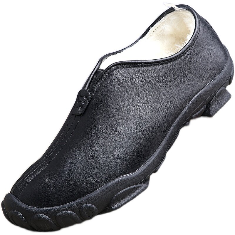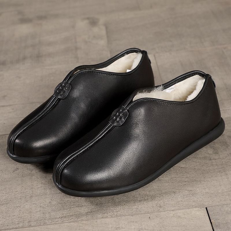 Old Beijing Cloth Shoes Men's Cotton Shoes Genuine Leather Wool One Thickened Warm Old Man Shoes Middle Aged Daddy Shoes Winter