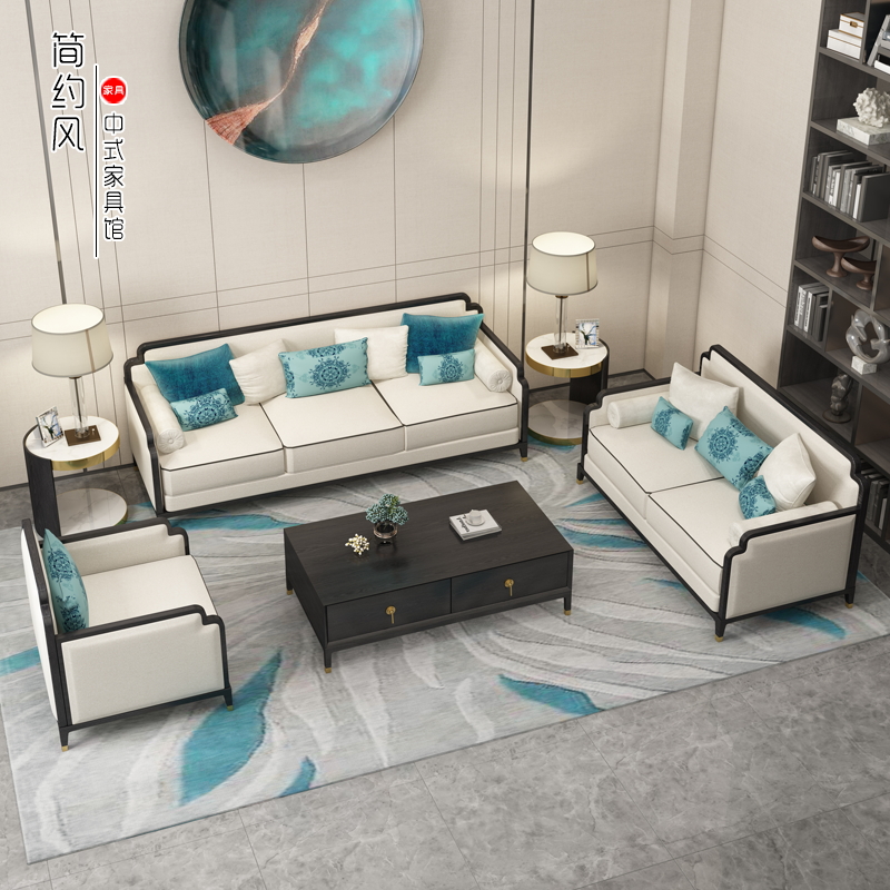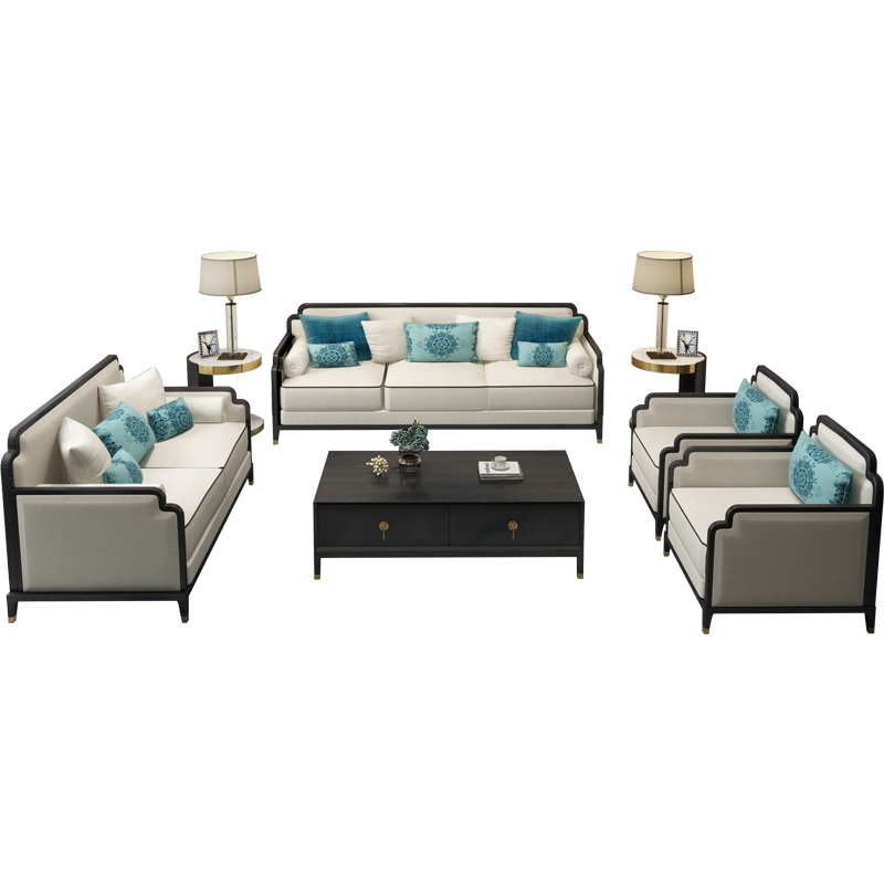 New Chinese Solid Wood Sofa Combination Modern Chinese Living Room Prototype Room Light Lavish Fabric Sofa Kit Complete Furniture