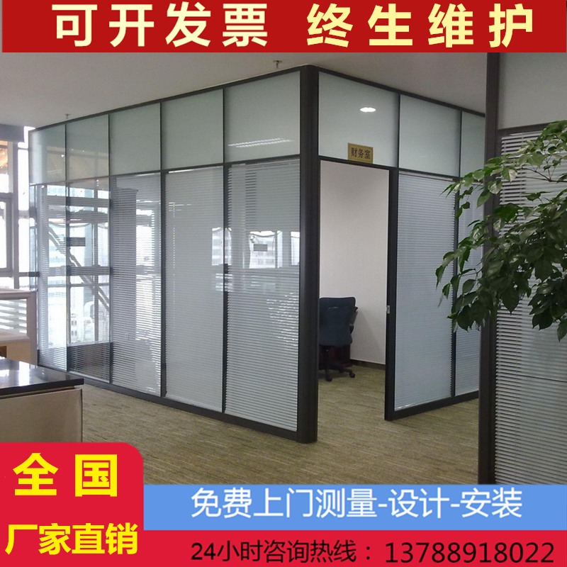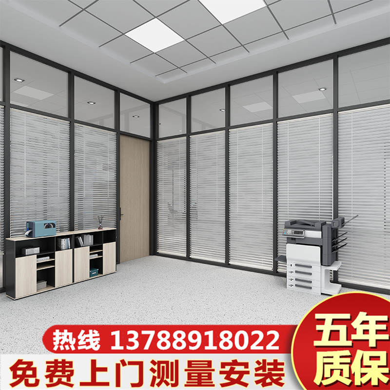 Office glass partition wall aluminum alloy shutters transparent tempered glass screen sound insulation wall high partition customization