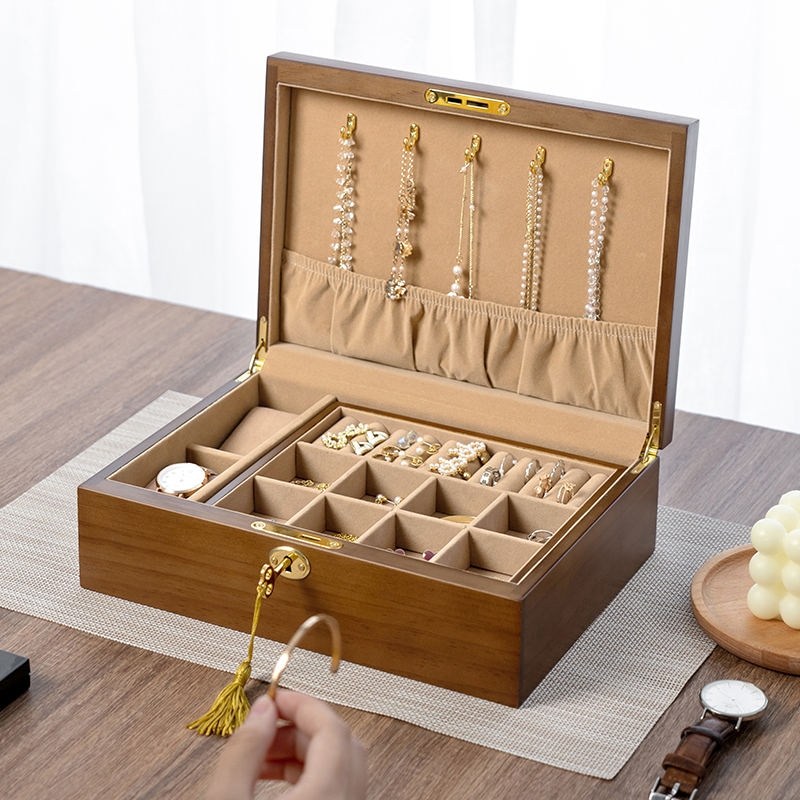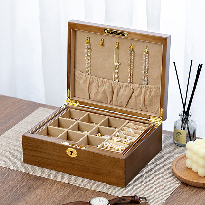 Retro Solid Wood First Accessories Box Containing Box Ancient Wind Necklace Ring Earrings Jewelery Accessories New Wood Light Lavish Delicacy