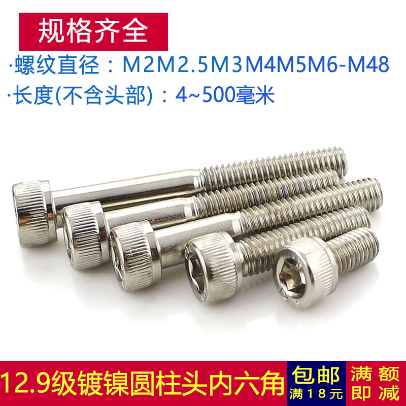 M12M14M16M20 grade nickel plated 12 9 cylindrical head hexagonal screw cup head*25x30x50x80x100mm