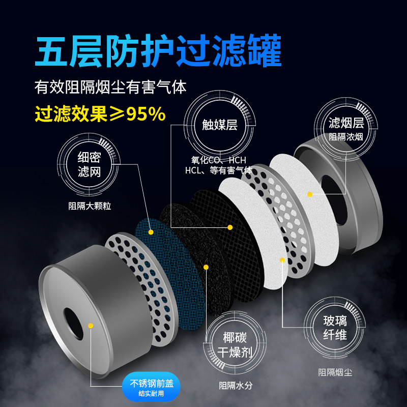 High-efficiency filtration self-rescue respirator stainless steel respirator protective mask silicone anti-smoke gas mask