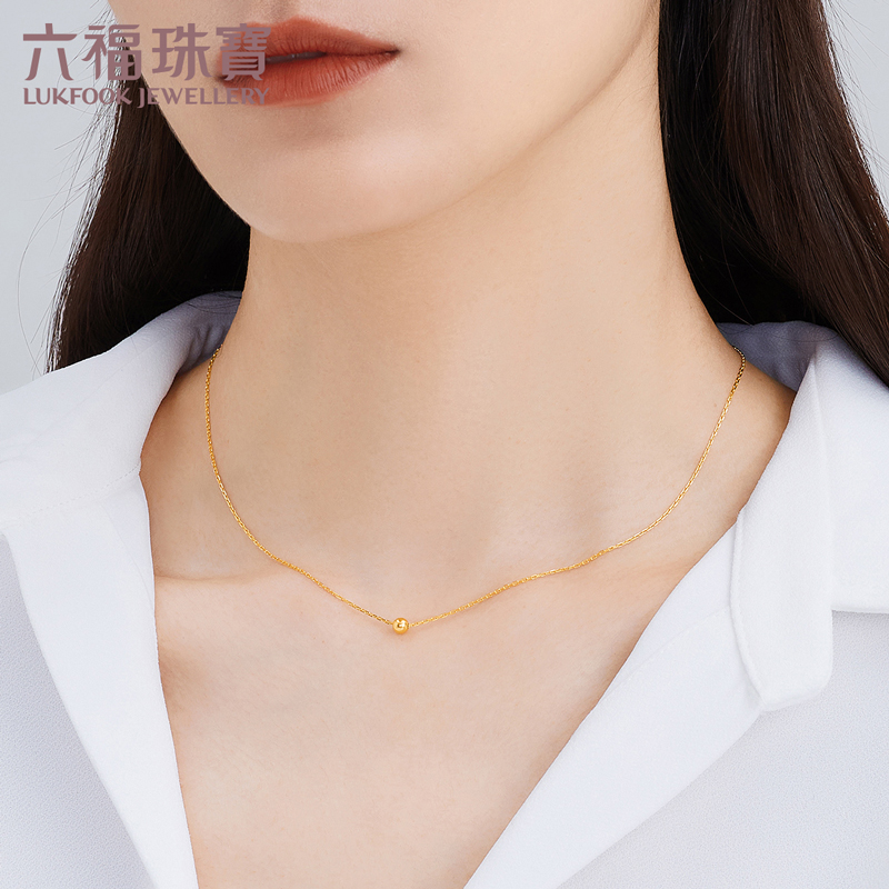 Luk Fook Jewelry Foot Gold Transfer Bead Small Pendant Gold Necklace Women's Set Chain Price L02TBGN0002