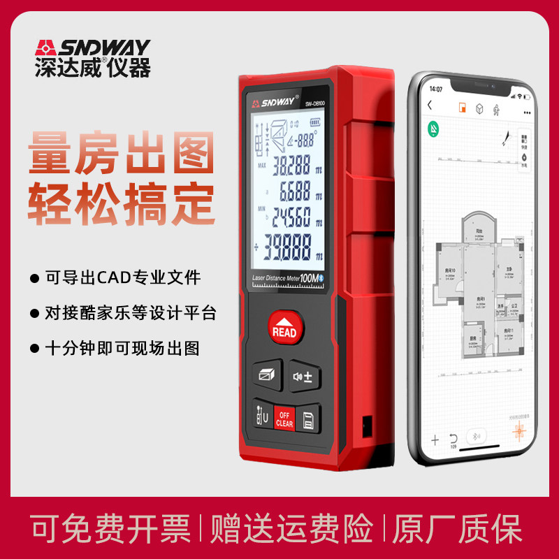 Deep Dawei infrared measuring ruler Bluetooth laser rangefinder drawing handheld measuring room instrument indoor electronic laser ruler