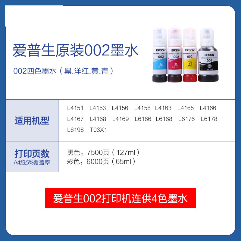 Epson Epson original 002 ink L4168L4158L6168 6198L4166L4166L4167 connected supply